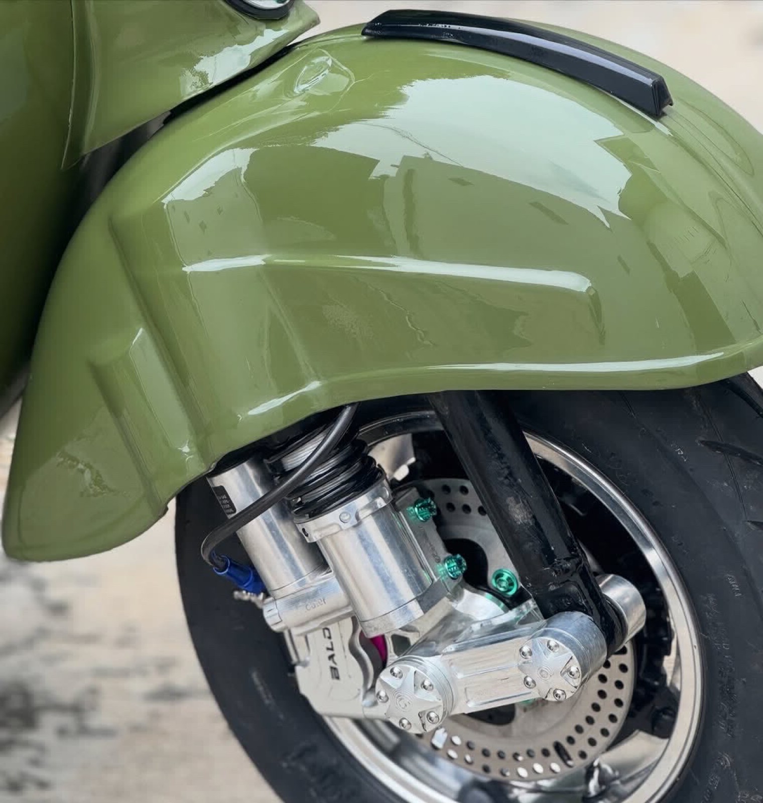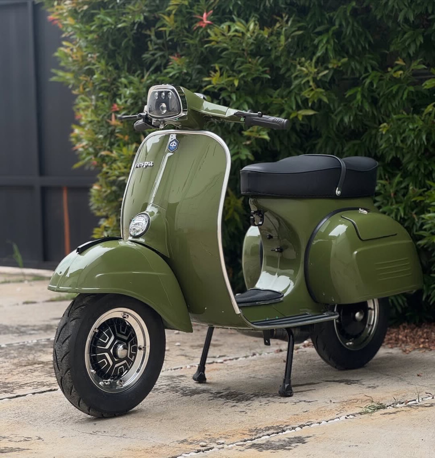 Avec sa teinte vert olive brillante et ses finitions modernes, cette Vespa attire immédiatement le regard. Elle incarne :